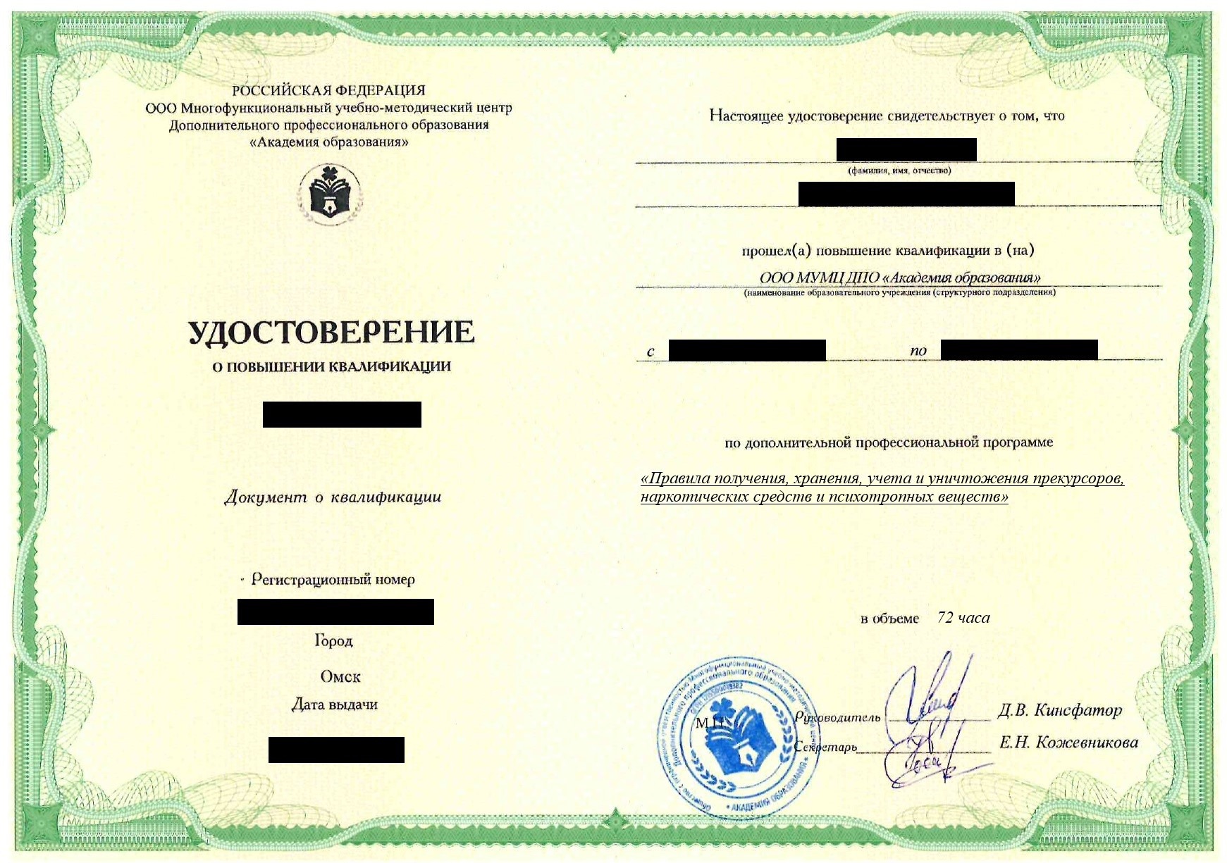 Повышение квалификации правила получения, хранения, учета и уничтожения прекурсоров, наркотических средств и психотропных веществ в Кемерово